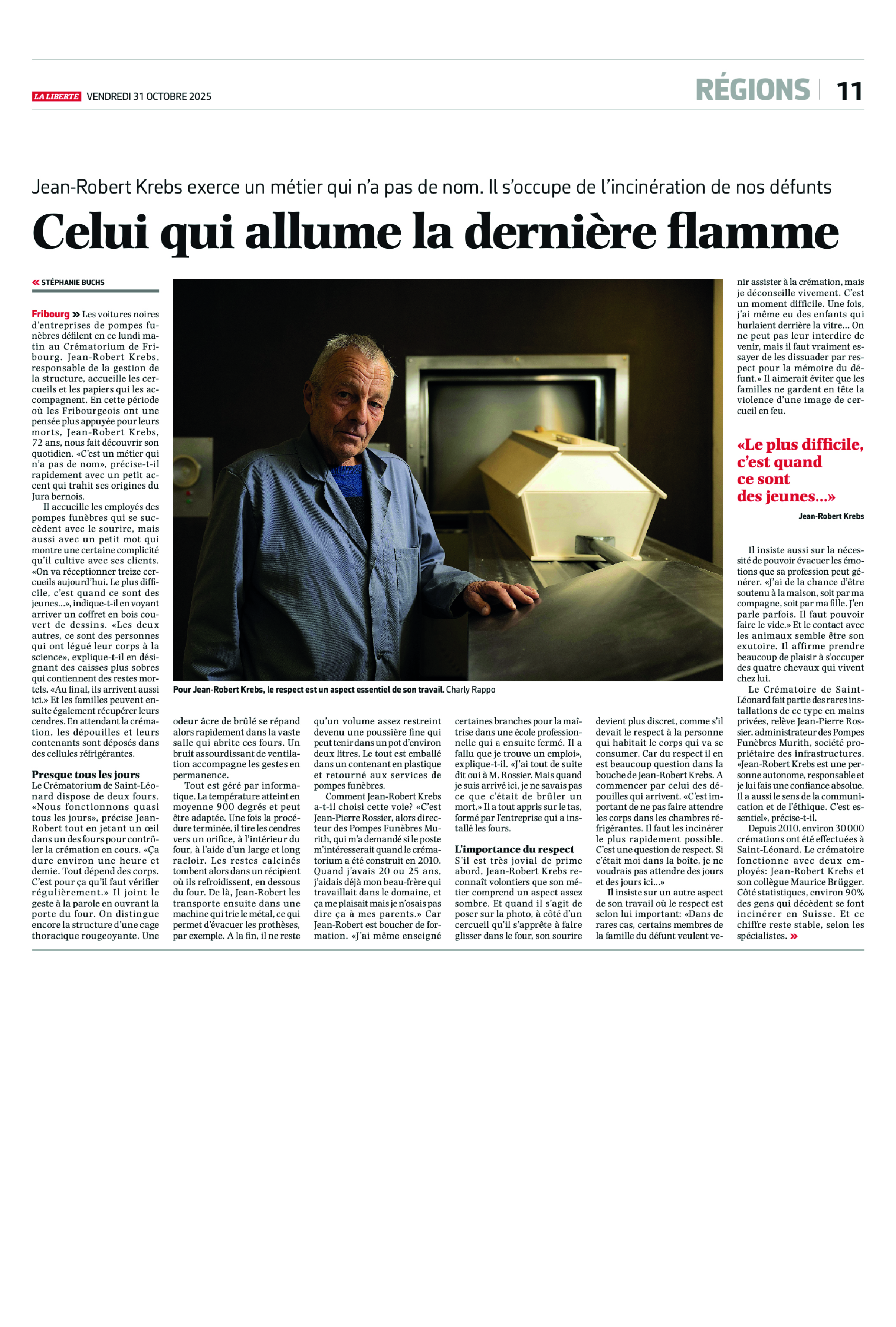 Le tout premier crématorium fribourgeois a vu le jour en 2010, sous l’impulsion des Pompes funèbres P. Murith SA, respectivement de Monsieur Jean-Pierre Rossier. Cette infrastructure moderne est idéalement située dans le cimetière de la ville de Fribourg.